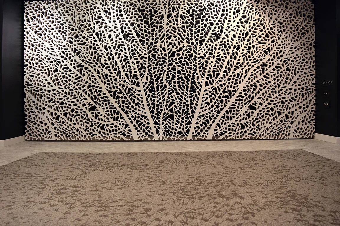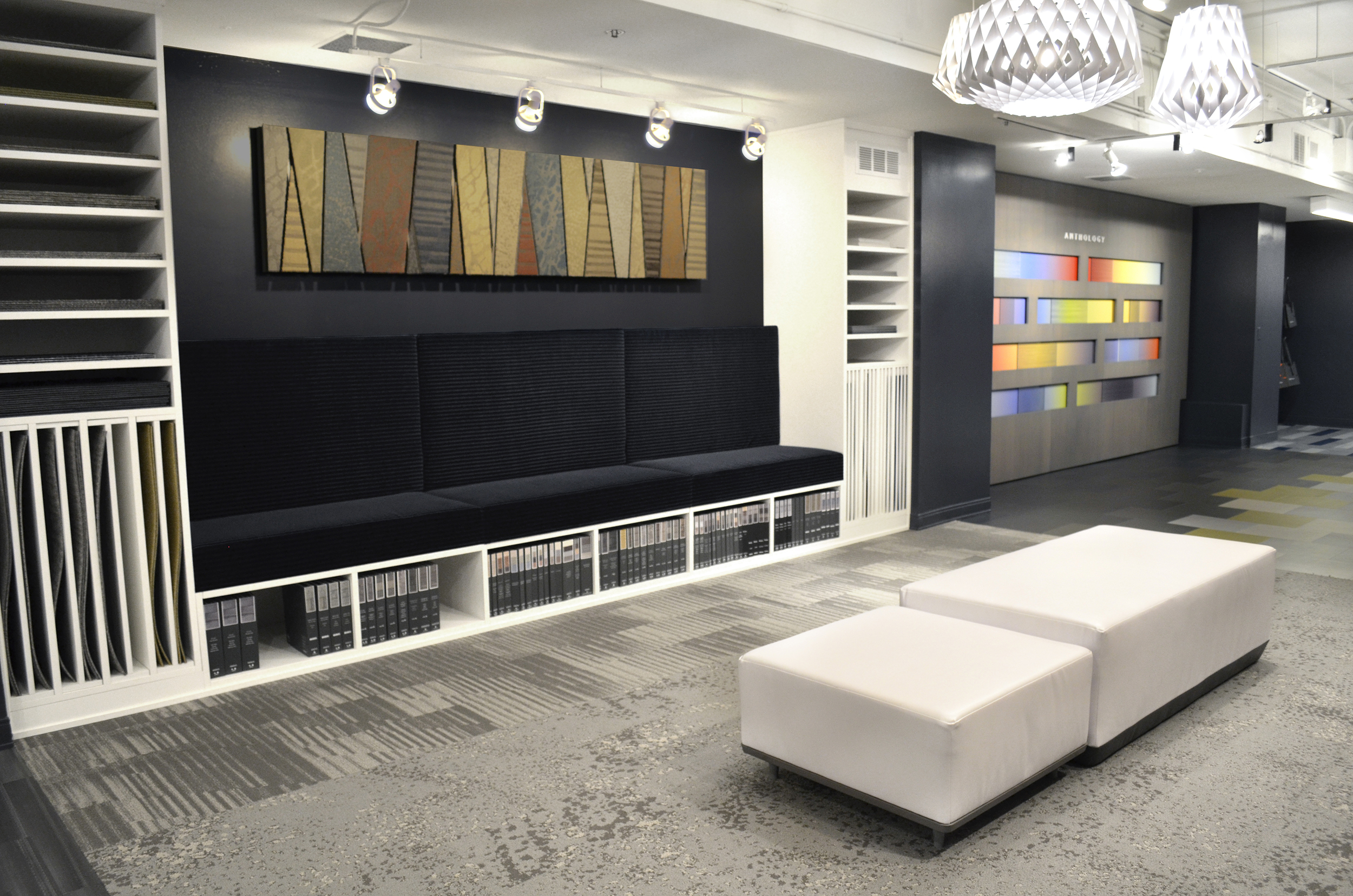 2015 - CNC Cut, Custom Oak Veneered Wall Panels, Product Displays, Upholstered Ottomans, Upholstered Banquettes and Built-in Storage